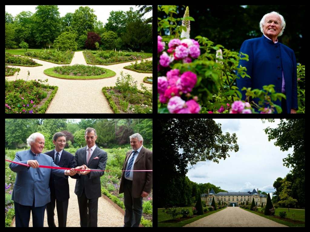 Yves Piaget inaugura il restauro del Giardino delle rose antiche (centinaia oggi le piante dei secoli passati); nella foto di David Atlan il taglio del nastro con Mr Lefébure, Mr Metzger CEO di Piaget e Mr D’Heygere