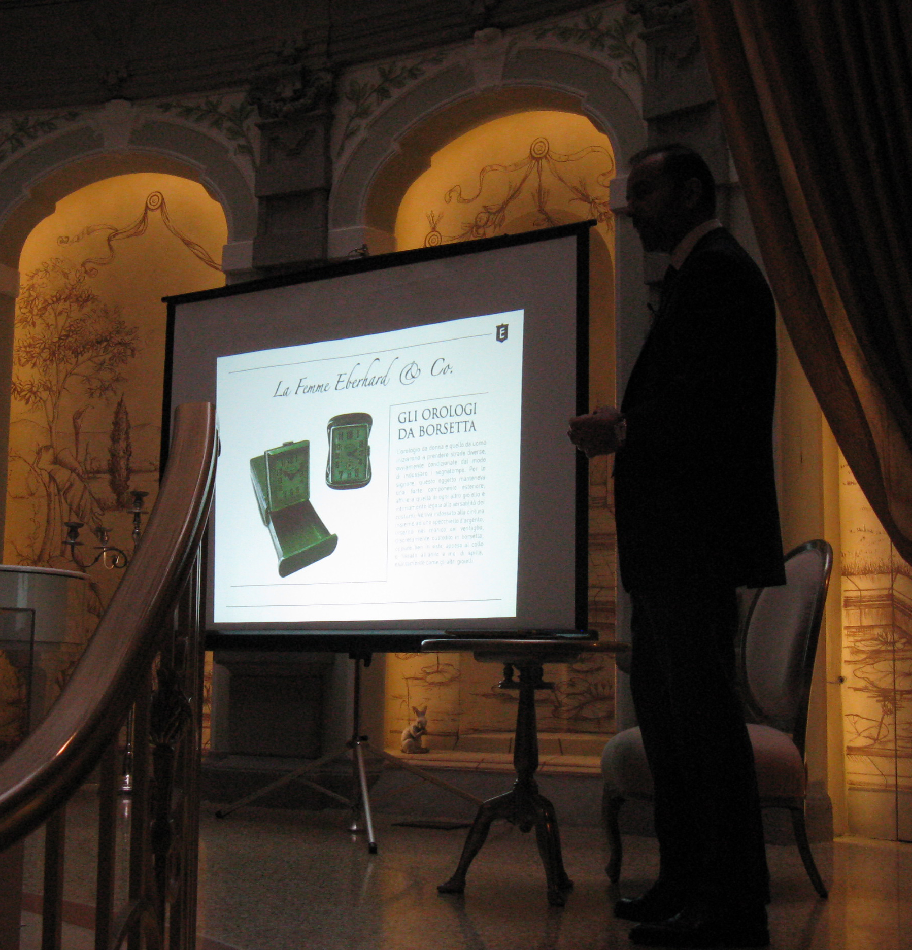 Nessuna signora inglese rinuncerebbe mai al suo tè delle cinque, per noi questo appuntamento, che sta scomparendo, si lega a salotti e chiacchiere femminili. Però è stato molto piacevole ritrovarsi a Milano il 27 marzo nella sala da tè di Chateau Monfort, oggi albergo, ma anni fa dimora patrizia, e bello il tema scelto: THEmpo di Gilda, l’orologio femminile di Eberhard & Co. Poi anche perché Mario Peserico AD di Eberhard Italia ha narrato la storia di questi orologi; i primi apparvero verso il 1910 e via via si sono uniformati alle diverse tendenze.