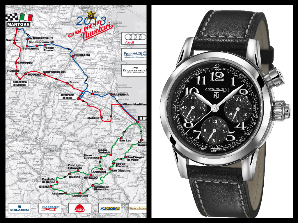 In quanto alll’Official Time Keeper, Eberhard&Co è legata da 23 edizioni a questo Gran Premio. La collezione dedicata a Tazio Nuvolari si è arricchita quest’anno con una nuova versione del cronografo Vanderbilt Cup, sopra.