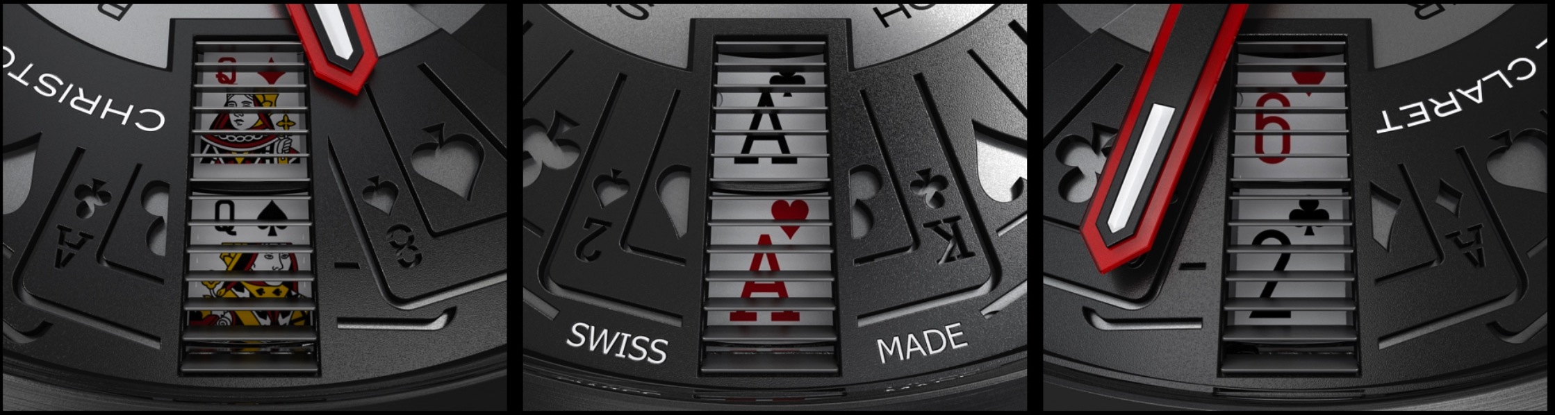 Negli orologi CC, capolavori della micromeccanica, le carte da gioco si compongono e scompongono in migliaia di soluzioni, il banco vince o perde e più o meno pari opportunità sono quelle che ha il giocatore, cioè il proprietario dell’orologio. Guardando i quadranti con lancette al posto delle palline per indicare il rosso o il nero, il pari o il dispari, i semi delle carte o le facce dei dadi, l’adrenalina non manca. Anche se non ci sono vincite o perdite reali con fiche e denaro.