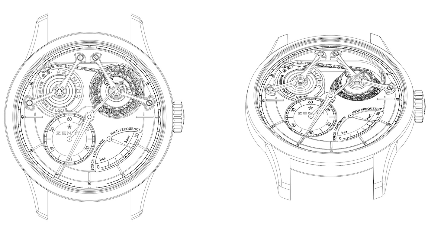 Il disegno tecnico del nuovo Zenith mostra il sistema fuso-catena durante il funzionamento e la ricarica