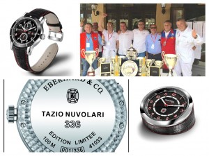 Infine last but not least non solo il Tazio Nuvolari 336 GMT da polso, messo in palio da Eberhard & Co. per i vincitori, ma anche la versione TN da tavolo o scrivania.