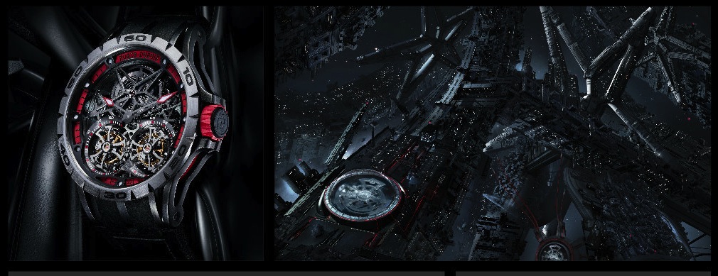 ROGER DUBUIS: da sempre legato alla scheletratura, oggi con il disegno di una stella enfatizza questa tecnica nella collezione Astrale, e nei più tecnici Excalibur spider (particolari in un modello i diamanti inseriti nel caucciù della lunetta) che hanno ispirato anche la scenografia dello stand avveniristica come sempre.