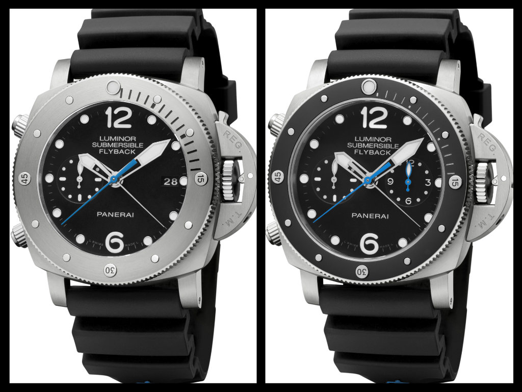 Infine i due Luminor Submersible 1950 cronografi automatici Flyback 3 days, entrambi con cassa in titanio ø 47 mm sub a 300 metri e lunetta, a scelta, in titanio o in ceramica nera; il movimento è il Calibro P.9200 sviluppato e realizzato in house.