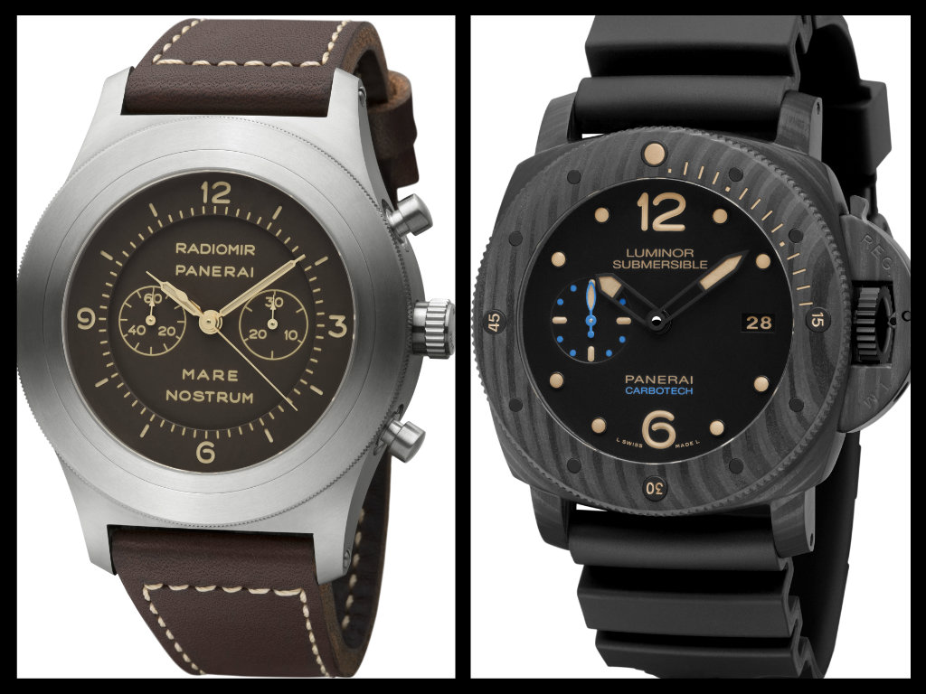 New materials also for Panerai cases and bezels; many Special Limited Edition, new Submersible diver to m.300; flyback chronographs and movements realized in house; on the top Luminor Carbotech Subnersible 3 days.