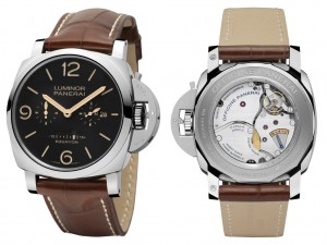 Cento sono invece quelli dell’Equazione del tempo con lettura lineare, proposta nella cassa Luminor 1950, ø 47 mm, e 200 quelli con cassa Radiomir 1940 ø 48 mm (il lancio è previsto in aprile), entrambi sono in acciaio, il movimento Calibro P.2000E a carica manuale è un 8 giorni, la riserva di carica è visibile sul fondello.
