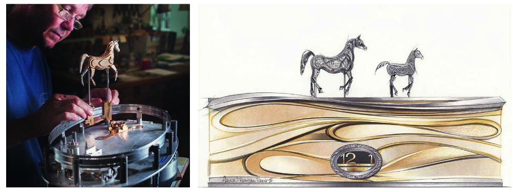 Torneremo a parlare di Parmigiani negli articoli dedicati agli anniversari, qui concludiamo con un’eccezione al tema degli orologi da polso, presentando un Objet d’Art, la più recente pendoletta ovale con automi, dedicata ai cavalli arabi.