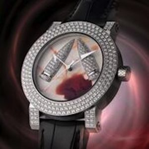 Quindi ecco gli orologi dell’eclettico svizzero Yvan Arpa con nuovi Artya, anche in esemplare unico, della collezione Son of a gun: il quadrante della cassa a forma di chitarra è completato da gocce rosse, lo stesso per quello con diamanti che mostra una pallottola d’argento scolpita a mano (curiosa la spiegazione scaramantica del modello a lato,”per difenderci dai lupi del nostro tempo”); un terzo ha un teschio multicolore laccato a mano secondo un’antica tecnica e un altro una complessa scultura in argento che raffigura un teschio..