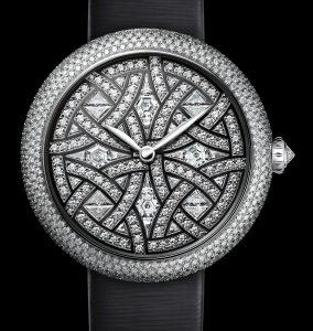 Il segnatempo Mademoiselle Privée con decoro Aubazine celebra un periodo di vita vissuto da Gabrielle Chanel presso l’abbazia di Aubazine, in Francia, rifacendosi agli arabeschi delle vetrate della stessa abbazia. Immancabili poi i modelli J12, in ceramica high-tech bianca o nera, con o senza diamanti Di tutt’altro stampo invece la collezione femminile Boy-friend Tweed. In acciaio con diamanti oppure in oro beige con diamanti. La caratteristica che più ci ha colpito – oltre alle linee classiche e pulite della cassa – è la lavorazione del bracciale a maglia stampata: giovane, fresca e moderna! Mentre il Monsieur de Chanel non poteva che essere in platino.