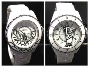 Chanel però non è solo raffinatezza (ricordate la sua frase: l’eleganza è quando il rovescio è bello come il diritto?) è anche giovane estro! Basti pensare ai modelli che propongono orologi come il mitico Mickey Mouse di Gérald Genta; qui i J12 in ceramica bianca hanno sul quadrante una Mademoiselle che indica il tempo con le braccia mentre nell’altro i numeri delle ore sembrano esser caduti tutti alla base della cassa, forse per sottolineare che i sogni a volte sono senza tempo. Lorenzo Sutti