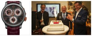 A Ginevra nella boutique di F.J.Journe, dopo Tokyo e Hong Kong, si è festeggiato il decimo anniversario del Souveraine Centigraphe con tanto di torta e dieci candeline.