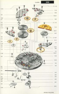 Nel corso degli anni al Calibro 240 base sono state aggiunte diverse funzioni, dal calendario perpetuo (Calibro 240Q) che portò lo spessore a mm 3,75, al Calibro 240 PS con piccoli secondi tra le 4 e le 5.. E ancora nella Ref.5000 il Calibro 240 PS IRM C LU con la riserva di carica e la luna, nella Ref 5015 o 5055 (quest’ultima prodotta dal 1997 al 2004) o nel Calibro 240 HU ora universale per la Ref.5110 (ma anche 5130). Infine il Calibro 240 LU CL C è stato scelto per il Gran Complicato Ref.6102 Celestial e l’elenco potrebbe continuare.