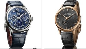 ALTA OROLOGERIA collezione L.U.C. il Lunar One Q.P. con giorno della settimana, data da grande finestrella, mese, quadriennio e fasi lunari, è uno dei modelli di vertice presentato una dozzina di anni or sono, adesso viene proposto in edizione limitata a cento esemplari con la cassa in platino, ø 43 mm, e il quadrante blu lavorato a guillochage raggi di sole, movimento automatico L.U.C 96.13-L, A/h 28.800, rubini 32. E un altro modello in edizione limitata per grandi appassionati è il L.U.C.XPS Twist QF Fairmined, 250 esemplari ultrapiatti in oro rosa con quadrante grigio finemente lavorato, movimento automatico. Realizzato secondo le norme della Qualità Fleurier è certificato cronometro dal COSC.