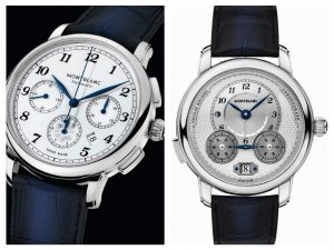 MONTBLANC: nella Star Legacy Collection due cronografi, un sottile automatico (Calibro MB25-02, cassa in acciaio ø 42 mm con anse ricurve che attirano l’attenzione e cinturino in alligatore blu sfumato realizzato da Montblanc Pelletterie in Italia). Il secondo modello è un monopulsante Nicolas RIeussec dall’estetica rivisitata anche se mantiene i codici tradizionali con i dischi della cronografia dei 60 secondi e dei 30 minuti sul quadrante, che all’esterno ha un anello con la scritta Nicolas RIeussec, la cassa ø 44 mm accoglie il Movimento MBR200 automatico con ruota a colonne e innesto verticale; i due bariletti assicurano 72 ore di riserva di carica, A/h 28.800: ore decentrate e secondo fuso orario con indicazione giorno notte e regolazione rapida di ore e data ruotando la corona avanti e indietro.