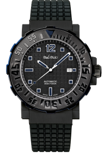 A quanto sembra imbarcazioni, sia in regata sia in manifestazioni non competitive, non vedranno presente ufficialmente nel 2018 Paul Picot, ma non è detto. Molte decisioni avvengono anche in un secondo tempo e magari vedremo ancora su scafi e vele il marchio svizzero. E in questo caso l’orologio sarà sicuramente il Plongeur C-Type dell’anniversario; questo orologio, nato negli anni ’80 è poi rivisitato e modificato alcune volte per adeguarsi alle mutate esigenze del mercato, proponendo anche modelli per collezionisti in tirature limitate, ha però mantenuto inalterata la forma rotonda. Adesso il nuovo Black Phantom in acciaio ø 43 mm. w.r. m.300 si presenta nel colore più trendy con cassa lucida e satinata e quadrante full black, lancette e indici geometrici visibili attraverso il gioco di luci e ombre, lunetta sempre con numeri in rilievo lucidi sulla superficie satinata, corona a vite, cinturino in caucciù con disegno a scacchi e fibbia professionale con chiusura di sicurezza. Un orologio per chi ama gli sport subacquei o comunque legati al mare.