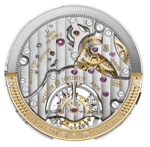 Per i cultori dei movimenti meccanici da rilevare che questo è il primo tourbillon a carica automatica di Vacheron Constantin e che il rotore è periferico. Le altre caratteristiche tecniche del movimento Calibro 2160, un 13”’½ con spessore di 5,65 mm, vedono 18.000 A/h, 30 rubini, 188 componenti, gabbia del tourbillon a croce di Malta, riserva di carica di circa 80 ore; un tocco di classe sotto il profilo cromatico è dato dalle viti blu per la versione platino e in grigio per l’oro rosa.