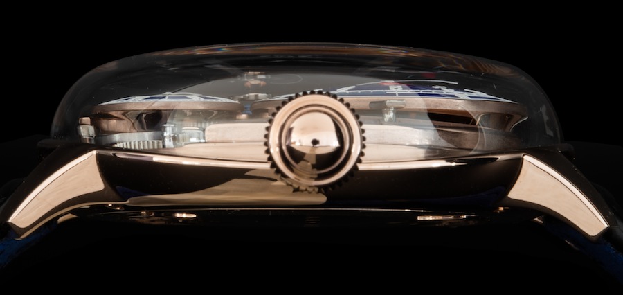 Qui apriamo una parentesi perché i suggerimenti ai futuri proprietari tengono conto anche delle proprietà di alcune pietre (l’ossidiana nera favorisce la spiritualità), ampio lo spettro offerto dal lapislazzulo, adatto a creatività, saggezza e concentrazione senza contare che proteggerebbe da allergie e problemi della pelle, infine la giada è il simbolo di prosperità, tolleranza, ottimismo e compassione. Tornando al quadrante alle 8 l’indicazione dei secondi che copre i due bariletti in coppia sul prolungamento della “tige de remontoir”. L’armonia dei movimenti può essere vista attraverso il nuovo vetro zaffiro semisferico che, come l’atmosfera sulla terra, segue un dinamica alla base del nome scelto “vetro atmosfera” e che integra il tubo della corona per essere poi incollato alla carrure sulla quale è avvitato il movimento; né réhaut né lunetta tolgono spazio alla visibilità dei componenti. Come accade in poche Manifatture, l’orologio è affidato a un solo maestro orologiaio che ne decora gli elementi del kit e li assembla secondo la migliore tradizione d’alta gamma. Questi altri dati del Calibro AC003: riserva di carica 72 ore, A/h 21.600, scappamento ad ancora svizzero, 51 rubini, 362 componenti, ebauches in Cuprum 479, titanio e acciaio inossidabile.