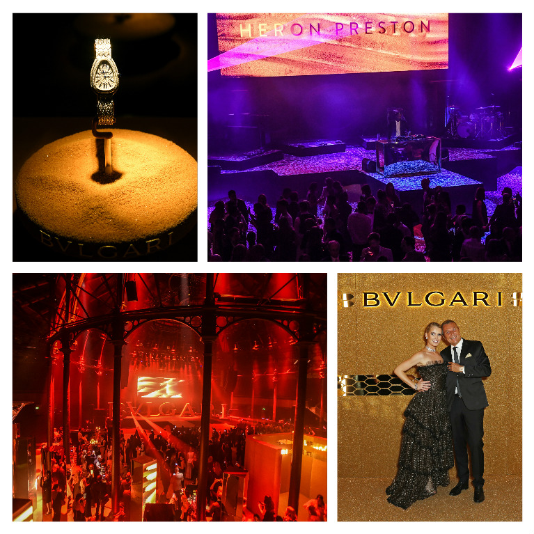 Agli orologi da polso di una collezione definita “nata per brillare in oro”, hanno fatto corona i più bei nomi della società londinese e numerosi altri ospiti VIP accolti da Jean Christophe Babin CEO della Marca nel Gruppo LVMH (nella foto con Lady Kitty Spencer, le altre immagini sono quelle della fantasmagorica cornice nel cosiddetto “teatro leggendario”, visto che dagli anni Sessanta ospita importanti concerti e spettacoli mentre in apertura c’è uno dei più ammirati Serpenti Seduttori).