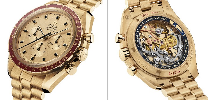 Per l’occasione Malik Bey, brand manager Omega nello Swatch Group Italy, ha presentato da Carlo e Camilla (nessun riferimento alla famiglia reale inglese, ma solo il nuovo locale di Cracco vicino al Duomo) le due edizioni in tirature limitate in oro e acciaio per il 50°, una serie di Speedmaster Vintage e, soprattutto, il cronografo n°1, dell’edizione di 1014 esemplari dedicata all’Apollo 11 nel 1969, destinato al Presidente USA Richard Nixon (i modelli dal n°3 al n°29 furono consegnati ai componenti il team della missione durante una cena). Il segnatempo per una legge federale che vietava doni costosi tornò alla Casa madre; per amor di patria non facciamo paragoni con analoghe situazioni nostrane, ma parliamo dei due orologi e delle loro differenze.