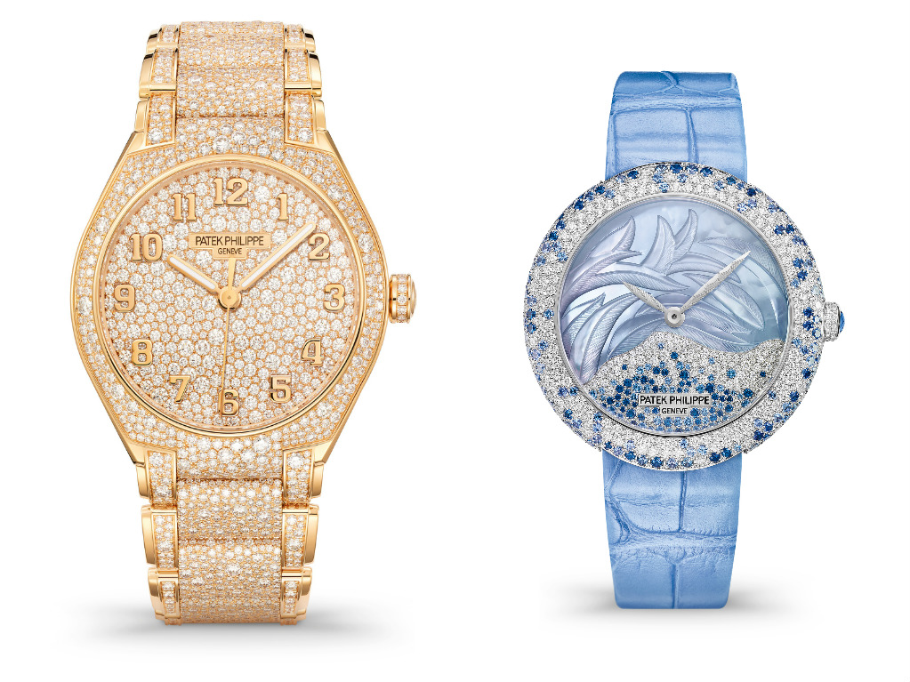 Nell’alta gioielleria inseriamo il Calatrava Ref.4899 in oro bianco, diamanti e zaffiri blu con il quadrante in madreperla azzurra finemente inciso, l’edizione precedente aveva gli zaffiri rosa, il movimento automatico è il Calibro 240 ultrapiatto con minirotore eccentrico in oro 22 carati. E che dire del Diamond Ribbon con diamanti su cassa e quadrante, incastonati a volute come i nastri che le atlete olimpioniche fanno ruotare nella ginnastica ritmica? Ma ai modelli femminili vogliamo dedicare presto un altro articolo.