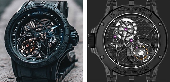 Among novelties the ultralight Excalibur Spider Tourbillon Volant squelette made of multi-layer carbon.
