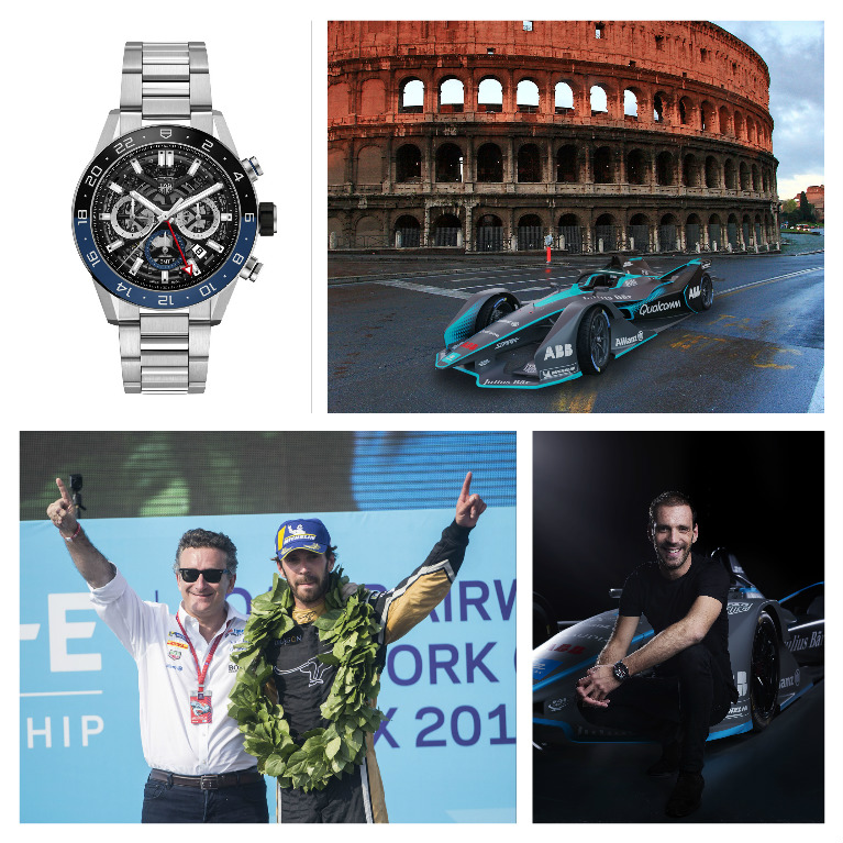 A Roma gareggerà anche il Campione in carica, Jean Eric Vergne (nella foto insieme al CEO della FE Alejandro Agag) recentemente nominato Ambassador di TAG Heuer. Orologio ufficiale della gara il cronografo di Manifattura TAG Heuer Carrera CH02 GMT.