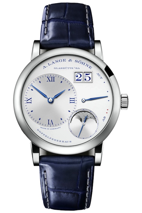 Il Grand Lange 1, realizzato in 25 esemplari, sembra identico al Lange1 ma se usate un calibro vi accorgerete che il diametro è maggiore di 2,5 mm e che sul quadrante tutte le indicazioni seguono proporzionalmente le nuove dimensioni. Ciò ha comportato alcune difficoltà nell’impiego del tradizionale movimento così ne è stato realizzato uno nuovo, il Calibro L095.1 manuale, più compatto, meno spesso e con una riserva di carica di 72 ore; per gli appassionati dei numeri ricordiamo che i rubini sono 42 e che di questi 7 sono incastonati in castoni d’oro.