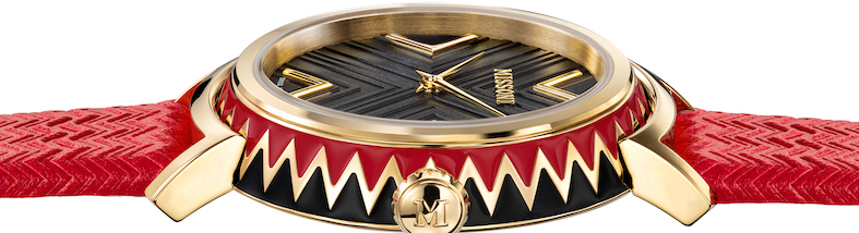 Nella collezione Missoni M1 è il quadrante variegato con i colori che sembrano inseguissi a farla da padrone mentre il cinturino è monocromatico, ma le due scelte possono invertirsi dando origine a orologi dalla grande visibilità e per le feste di Natale c’è anche un quadrante in maglia lamé a zig-zag, la sua confezione regalo comprende il bracciale in metallo e il cinturino in lurex interscambiabili. La cassa ha un diametro di 34 mm, movimento al quarzo Ronda 762 Swiss Made.