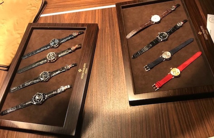 Negli appuntamenti fieristici o nelle singole esposizioni organizzate in paesi lontani, a volte si possono ammirare orologi da polso musicali sia perché novità oppure in produzione, ma con dettagli diversi, per esempio il colore del quadrante. Oggi Patek Philippe ha in produzione 23 orologi cosiddetti musicali, che fanno ascoltare il passare del tempo (compreso il Calibro 89 che da polso proprio non è); nove sono stati selezionati per essere presentati su mercati interessanti, in una mini-collezione di Gran Complicati; qualche prenotazione però ha dato forfait e la filiale italiana è stata pronta a porre la sua candidatura, riuscendo a presentare nove Ripetizione minuti, completate anche da altre complicazioni (Gran Sonnerie, Calendario perpetuo, quello annuale, con l’indicazione a retrograde e ancora l’abbinamento con la cronografia rattrapante). Al vertice fra tutti