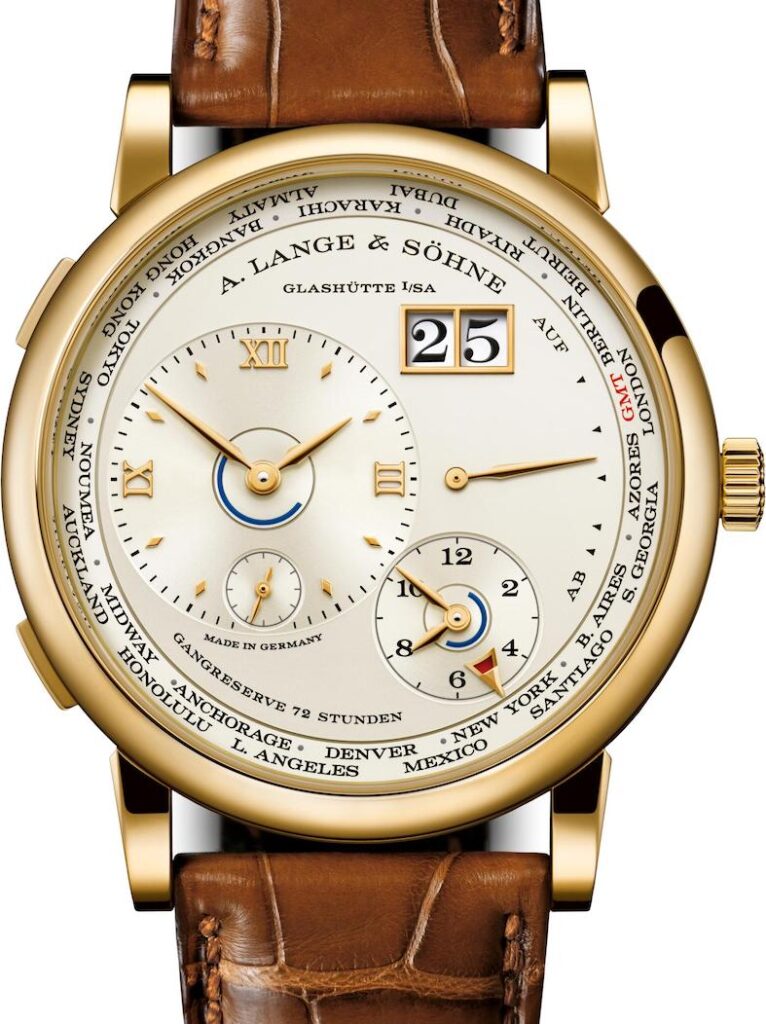 Dopo 15 anni è stata presentata la nuova versione del Lange 1 Time Zone realizzata in 100 esemplari per ogni tipo di cassa (ø 41,9 mm) in oro bianco, rosa o giallo. Movimento di Manifattura visibile dal fondo, Calibro manuale L141.1, sul quadrante indicazione dell’ora di casa e di un secondo fuso, scelto fra quelli indicati sull’anello esterno.