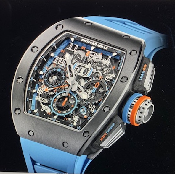 A new exclusive materiale for RM-1105 selfwinding squelette chronograph fly-back and GMT; its unique grey color is due to combination of zirconium with ceramic inserts.