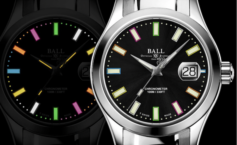 Oltre alla maggiore luminosità di questa tecnologia elvetica, adottata da Ball, con l’inserimento del gas H3 in 27 microtubi di vetro cosicché lancette e indici si illuminino al buio con i colori dell’arcobaleno, si può leggervi anche un messaggio di speranza al termine (si spera) della pandemia che ha colpito il mondo intero.