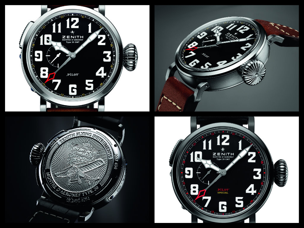 Nei primi decenni del XX secolo Le caratteristiche speciali per gli orologi da pilota, che stavano iniziando il loro percorso di successo, furono condensate nella specifica “Type 20”, definizione francese adottata negli anni Trenta e usata ancora oggi per orologi da pilota non solo di Zenith, ma anche di altri marchi. Gli Aéronef Pilot Type 20 sono stati, a Baselword 2013, fra i modelli di successo per il fascino che si lega sempre agli orologi militari. Sei le versioni presentate, compresa una di 500 esemplari in titanio DLC, dedicata al temerario Barone Rosso, Manfred Albrecht von Richthofen, sul fondello l’incisione riporta il suo famoso Fokker Triplano Dr.1 e la frase Montre d’Aéronef Type 20, Zenith Flying Instruments.