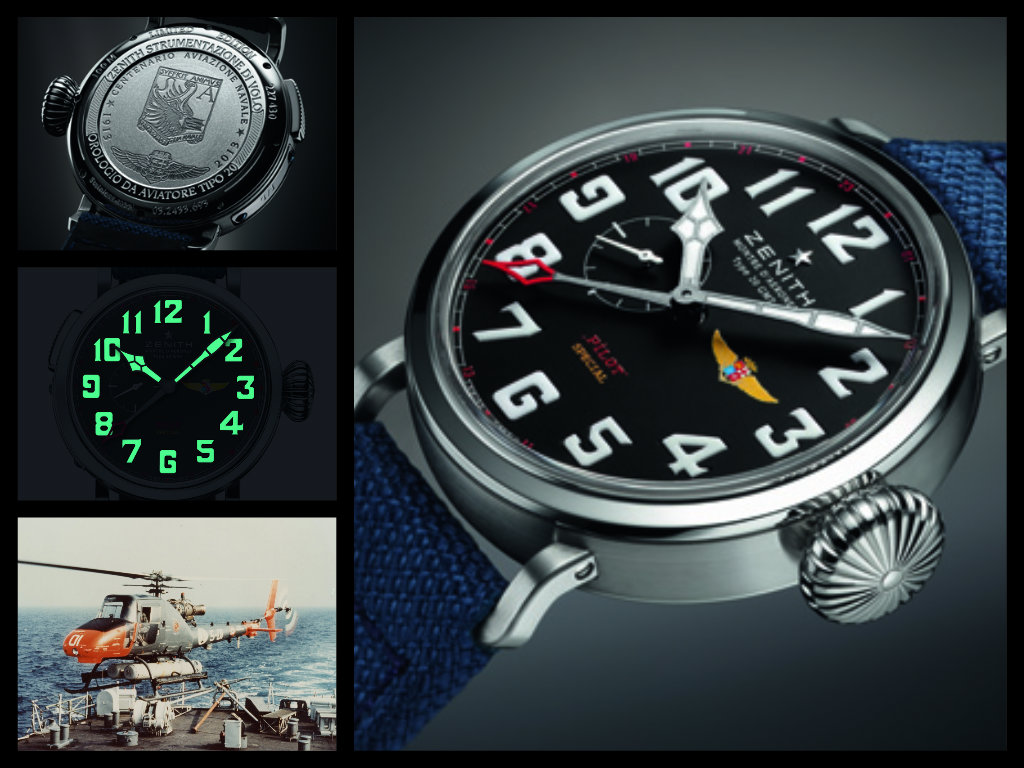 In molte occasioni le nostre Forze Armate hanno ordinato per ufficiali, comandanti o truppe scelte, orologi realizzati in Svizzera da storiche aziende. Anche Zenith è fra queste e il brand manager per il nostro mercato ha suggerito un orologio anniversario esclusivamente realizzato per la clientela italiana. Così Cinquanta Montres Pilot Aéronef Type 20 GMT ricordano il centesimo anniversario della nostra Aviazione Navale che fa parte della Marina Militare.