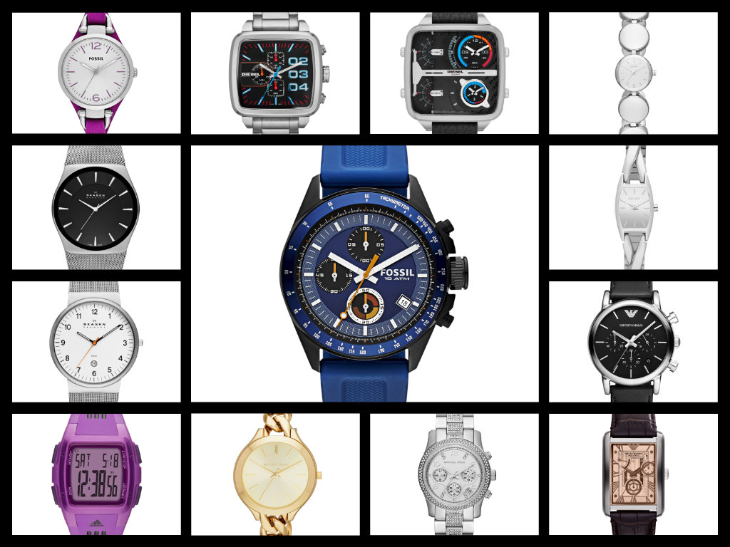 Gli Emporio Armani sono classici con quadranti in sobri colori opachi e indici applicati; sportivi o eleganti i Fossil; giovani e digitali gli Adidas; femminili i DKNY; minimalisti i nordici Skagen premiati quattro volte con il Red Dott; un mix tra classico e innovazione nei Michael Kors. Prevalenza di casse rotonde con dimensioni da mm 24 a mm 45 mentre il piatto territorio Salt Falls ha ispirato i Racer Deserert Square Diesel, forse i più originali. In tutti movimenti al quarzo.