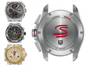 Il fondello del Carrera con la S, a lato il fronte, il Formula 1 e il TAG Heuer S(el indossato da Senna