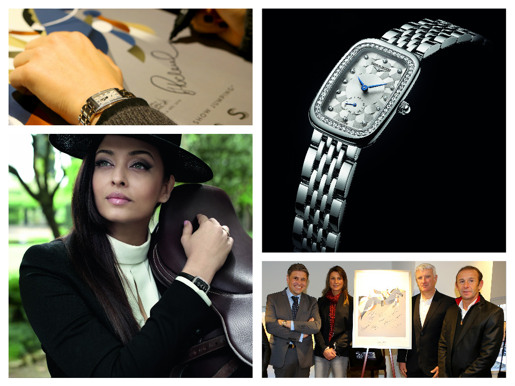 LONGINES: Presentata a Baselworld 2016, l’Equestrian Collection è estremamente elegante. Da mettere in risalto il design della cassa ispirato dall’anello rettangolare della briglia da presentazione dell’unica razza equina svizzera la Franches Montagnes. A Parigi la collezione, che comprende 4 versioni con quadrante silver, nero, madreperla, movimenti al quarzo, cinturino o bracciale, è stata ammirata nella boutique Longines dalla squadra olimpionica francese di salto a ostacoli; Alshwarya Rai Bachchan campionessa d’eleganza Longines indossa il nuovo orologio.