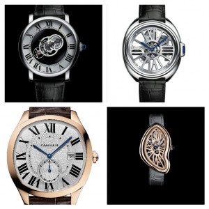 Dall’alto in senso orario Rotonde de Cartier Astronmysteriueux, La Clé scheletrato, Mechanical Legends Crash squelette, Drive automatico oro rosa