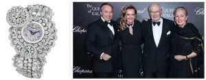 L’oologio della collezione Le Jardin de Kalahari. La famiglia Scheufele: a sinistra i fratelli Karl Frederic e Caroline con i genitori Karl e Karin