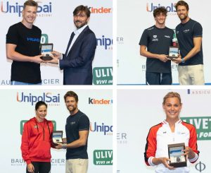 I Baume&Mercier a quattro atleti: in senso orario Andryl Govorov, Luca Dotto e Federico Burdisso, Pernille Blume; Luca Dotto e Fanny Leclyse