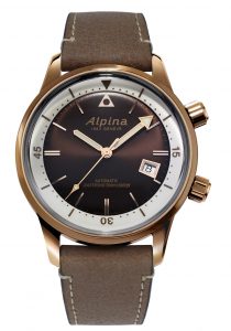 ALPINA (Gruppo Frederique Constant): la Marca elvetica nel 1969 aveva lanciato il suo primo orologio da immersione w.r.a m.200, che in seguito ha dato origine alla collezione Heritage. Nel 2019 l’Alpina Seastrong Diver Heritage ha la cassa ø 42 mm in acciaio inox rivestita PVD color bronzo w.r. a m.300, movimento Sellita sw200 modificato Alpina, A/h28.800, 26 rubini, carica 38 h; corona superiore per regolare la lunetta girevole interna marrone o crema, corona inferiore per regolare ora e data; quadrante marrone con indici e lancette placcati oro rosa.
