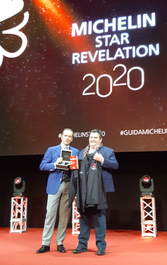 A Piacenza, per la quarta volta a fianco della Guida Michelin Italia, durante la presentazione dell’edizione 2020 nel Teatro Comunale, Mario Peserico, AD della Maison, ha consegnato ieri a Gennaro Esposito (ristorante Torre del Saracino di Vico Equense un 2 Stelle Michelin per la sua cucina del territorio, vincitore del Premio Michelin Chef Mentor Italia 2020) uno Scafograf 300, l’orologio che nel 2016 è stato premiato al Grand Prix d’Horlogerie de Genève.