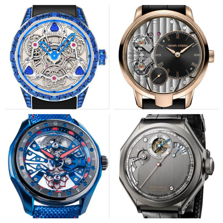 Proprio ieri abbiamo pubblicato la nuova versione con zaffiri blu del triplo tourbillon di Antoine Preziuso, esemplare unico che alle pietre preziose affianca un grande movimento. L’esemplare iscritto da Armin Strom ha il Punzone di Ginevra. Nel 2017 la Marca indipendente Avantist e la Concepto Watch Factory hanno realizzato una collezione che, in omaggio al Sultano del Brunei, è stata chiamata La Majesté e comprende diverse versioni, quella del GPHG 2019 è prodotta in 8 esemplari. Forza costante e trasmissione fuso a catena uniti al tourbillon da Chronometrie Ferdinand Berthoud che ha scelto l’estetica del regolatore e vicino a un Marchio fatto rivivere dalla passione orologiera di Frederic Scheufele anche KF che a La Chaux-de-Fonds da pochi anni è entrato nel mondo dell’alta orologeria. Infine tre storiche Maison, IWC, TAG Heuer e Zenith che ancora una volta si mettono in gioco.