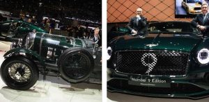 La prima Bentley e la Bentley del centenario, la Continental GT Number 9 edition by Mulliner con G. Kern CEO di Breitling e A. Hallmark CEO e presidente di Bentley