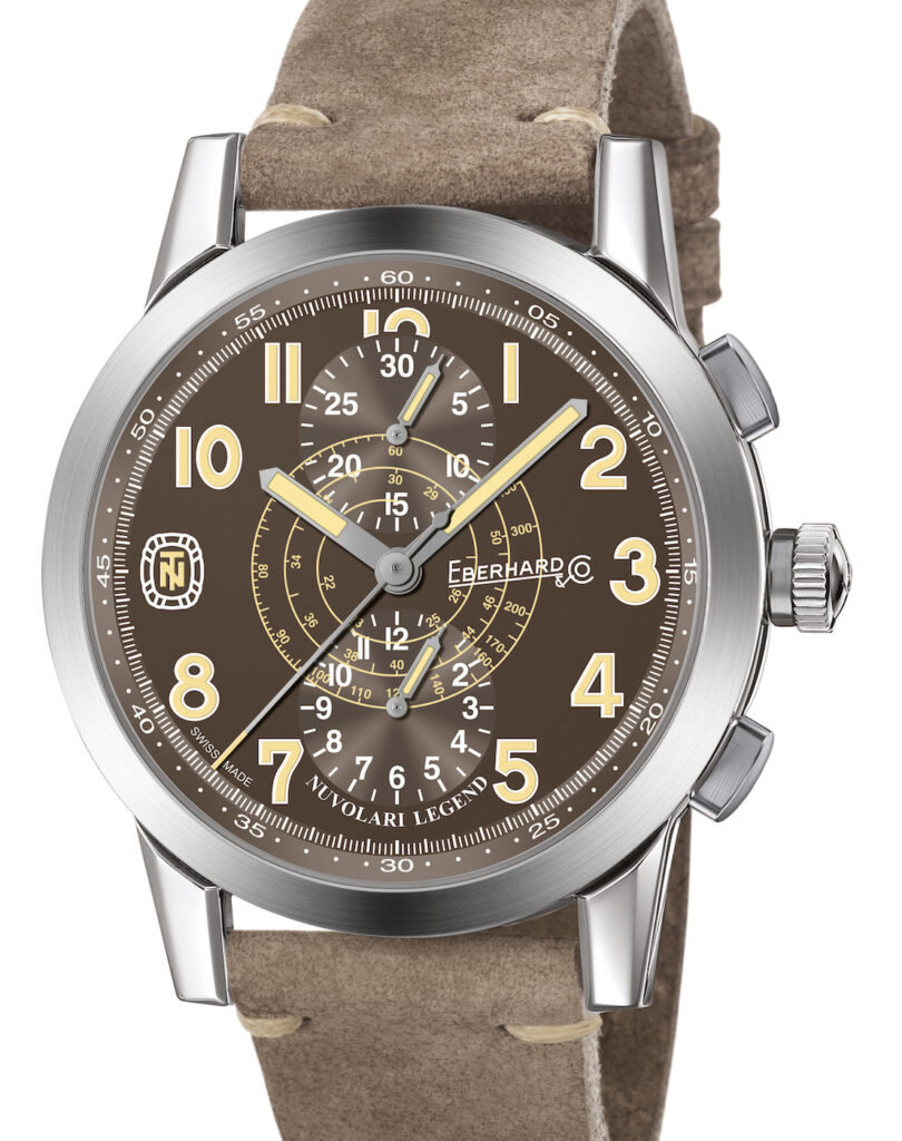 La collezione dedicata da Eberhard&Co. al grande pilota mantovano, si arricchisce di una nuova versione: il cronografo automatico con cassa in acciaio ø 43 mm ha un quadrante color cuoio anticato e un cinturino cromaticamente coordinato.