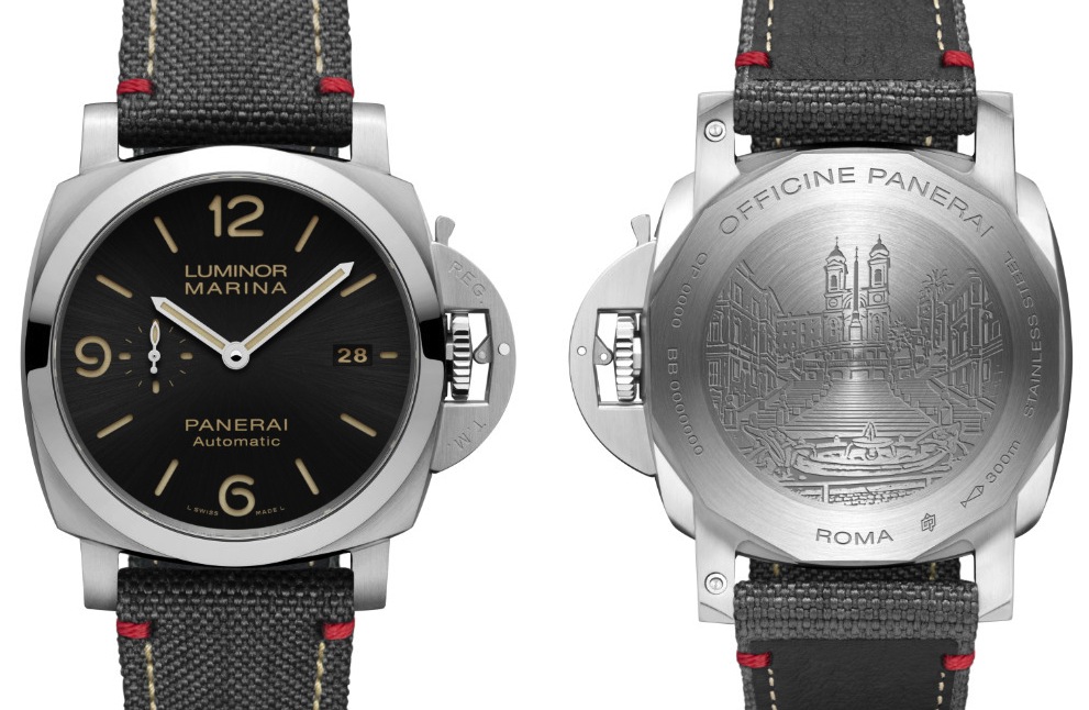 Così l’Inaugurazione ufficiale ha visto l’11 giugno il taglio del nastro in via del Babuino, per altro già un punto di riferimento per gli appassionati di orologi, visto che la Marca ha lanciato, seguendo ciò che aveva fatto in precedenza anche a Firenze e Venezia, un modello in edizione speciale. Per Roma è stato scelto il Luminor Marina 44 mm, gli esemplari sono 130 il numero civico della boutique; sul fondello è incisa la scalinata di Trinità dei Monti mentre il cinturino ha le cuciture gialle e rosse per ricordare cromaticamente lo stemma della capitale.