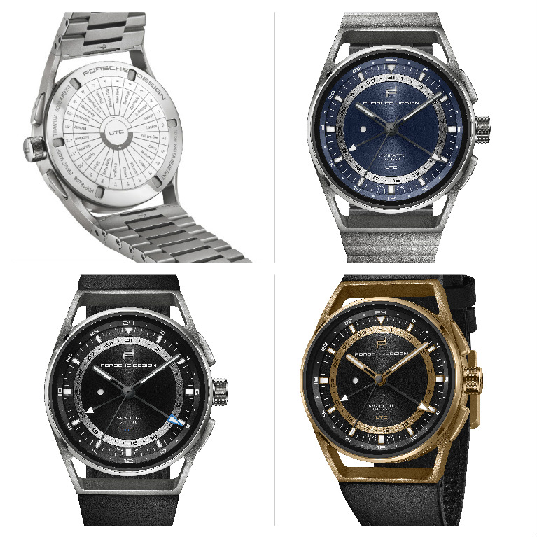 In pole position a Baselworld il 1919 Globetimer UTC disponibile in 4 versioni (blu, marrone, nero con cassa in titanio oppure in oro) presenta un innovativo sistema per conoscere l’ora nel mondo, sul fondello sono incisi i nomi delle principali città con l’indicazione di quante volte si debbano premere i pulsanti +/- perché la lancetta delle ore, che a ogni pressione scatta di un’ora in avanti o indietro, si posizioni immediatamente sull’ora della città desiderata; la cassa in titanio ø 42 mm, w.r. a 10 atm. ha il vetro zaffiro e la corona a vite; sul quadrante nero data analogica e indicatore 24 h sul rehaut, il disco giorno/notte (o am/pm) è a ore 9; il movimento di proprietà è il calibro PD 04.110 su base Sellita SW200 con rotore personalizzato bidirezionale; anche qui il cinturino è realizzato con la pelle impiegata per le mitiche Porsche.