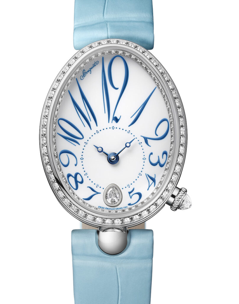 BREGUET – La Reine de Naples è una collezione che non smette di stupire, sembra sempre la stessa, ma in verità ci sono molti dettagli (qui il quadrante è in smalto Grand Feu e la scelta cromatica del celeste coinvolge anche il cinturino) che ne fanno di volta in volta un orologio da sognare, sia per il Marchio e relativo posizionamento di mercato (la lunetta in acciaio è impreziosita da 117 diamanti) sia per il tipo di produzione con movimenti automatici di Manifattura. Così lo pubblichiamo come buon augurio in attesa di tornare a una completa normalità.