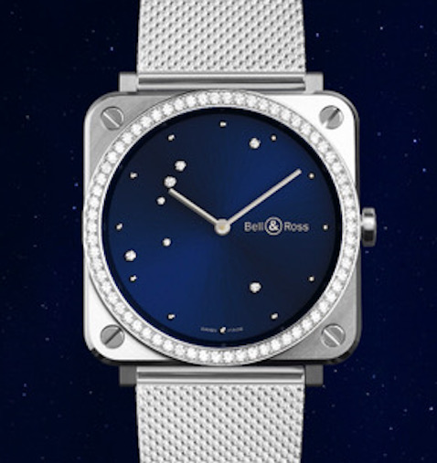 BELL&ROSS – Blue Diamond Eagle DMS (ma è disponibile anche in versione grigia e senza diamanti) con movimento Calibro BR102 al quarzo, cassa w.r. a m.100 ø 39 mm, sul quadrante la costellazione dell’Aquila; cinturino in alligatore o bracciale mesh in acciaio.