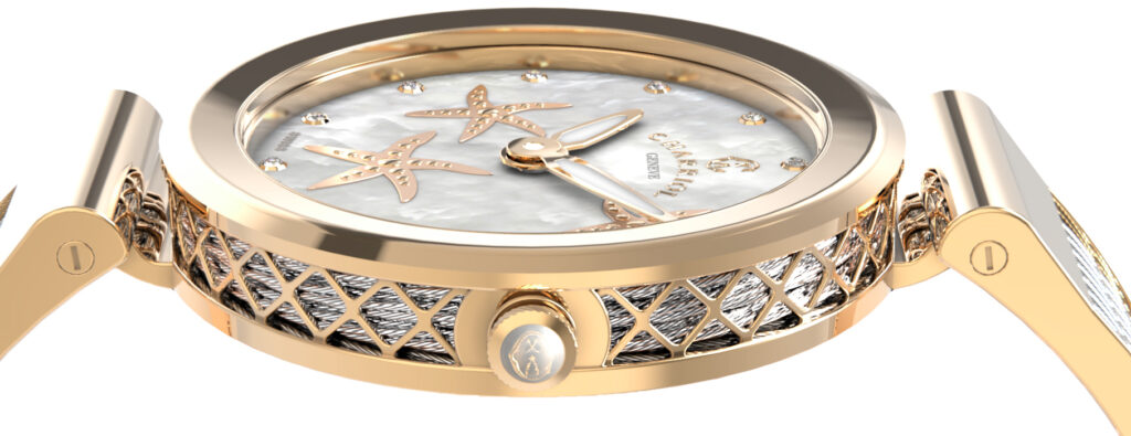 Un nuovo orologio, ispirato all’Oceano e alla natura, arricchisce da ottobre 2020 la produzione Charriol con due versioni femminili, cassa ø 35 mm in acciaio o PVD yellow o rose gold (come il bracciale).